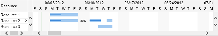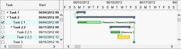 使用ScheduleChartView控件显示带任务分配(每排多个任务栏)的资源列表: