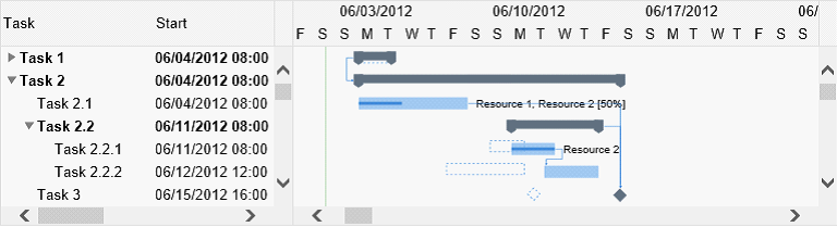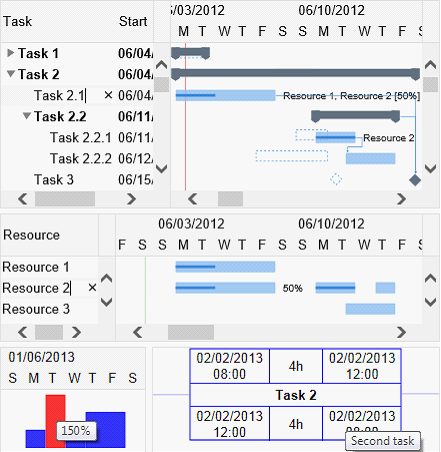 系统要求: JavaScript® (ECMAScript 5); Internet Explorer® 9 or another inline SVG-enabled host. 使用Gantt Chart Hyper Library软件开发人员可以: 用GanttChartView控件显示(基于indentation ) 分层任务列表:
