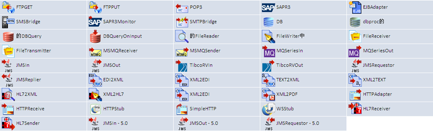 Fiorano适配器提供与多种应用程序和技术交互的能力。Fiorano和一些适配器开发商和应用程序供应商以及其他合作伙伴已经建立了一个完整的适配器目录,这有助于减少整合业务流程所需的工作。