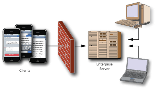 支持通过双向连接的推送应用程序,所以企业服务器可以调用通过iPhone的对象工具,即使有防火墙的存在