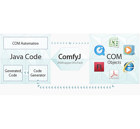 使用双向Java-COM桥在Java应用程序中处理COM/OLE/OCX或ActiveX对象。 为什么选择ComfyJ ComfyJ允许您将Java应用程序与任何Windows平台COM/OLE/OCX/ActiveX库集成。 该库使纯粹用Java创建Java COM服务器成为可能。换句话说,一个设计好的Java COM服务器可以作为COM对象公开给其他COM应用程序,而无需编写一行本机代码。 有很多很棒的文档例子。 大力支持。响应迅速的支持团队将在24小时内回复您的请求。要获得帮助,您可以选择不同的支持渠道:电子邮e、 支持网站和 论坛或高级支持服务。 代码生成器实用程序 使用这个捆绑的应用程序,您可以为COM组件或COM类型库生成Java COM包装器。这些生成的类允许您像使用常规Java对象一样使用COM对象。此外,如果需要,此应用程序可以编译生成的类并将它们打包到JAR文件中。 Java应用程序与MS Office组件集成 并提供创建、编辑和显示各种Office文档(如Word、Excel、PowerPoint文档)的能力。ComfyJ提供OfficeContainer组件,用于嵌入Office文档; 嵌入应用程序 将各种系统(如MediaPlayer、InternetExplorer等)和第三方(如PDF Viewer、Shockwave Flash Player等)ActiveX 组件直接嵌入到Swing UI的Java应用程序。ComfyJ提供了允许将任何ActiveX组件嵌入到Java Swing UI中的OleContainer组件。 与各种COM类型库集成的Java库 ComfyJ为Java应用程序提供了与任何COM类型库集成的极大灵活性。ComfyJ代码生成器提供了从COM类型库为COM类型创建Java包装器的能力。 向COM公开Java类的Java应用程序。 ComfyJ提供了直接在Java中创建COM类并将它们公开为Java COM 务器的能力,以便其他COM应用程序可以通过COM访问它们。 产品功能特征 COM接口和数据类型包装器 COM接口和数据类型包装器允许像普通Java对象一样使用COM类型和接口。例如,您可iIUnknown、IClassFactory和IDispatch用作典型的Java接口,将 Variant(VARIANT)、BStr(BSTR)SafeArray等用作常规Java类型。 COM内存管理 所有COM和其他本机资源都将自动进行垃圾收集,或者如果应用程序逻辑需要,您可以释放它们。 VTBL&COM自动化 ComfyJ允许通过其在VTBL(虚拟方法表)中的函数索引或使用自动化方法通过其名称调用COM对象的方法。此外,Automation允许获取i设置COM对象的属性,包括索引和命名对象。 隐藏或离屏窗口 ComfyJ包含OleContainerSwing 组件,它允许您: 在Java Swing UI中使用任何可视COM组件(OCX/ActiveX)。使用此功能,您可以嵌入各种 ActiveX 应用程序,例如Internet Explorer、Acrobat Reader和Microsoft Office,以及各种媒体组件,例如Windows MediaPlayer、DVD Player、QuickTime、ShockwaveFlash等。 ProgID使用、CLSID或从文档文件创建嵌入对象。此外,您可以将COM对象(实现IOleObjectCOM接口)插入到容器中。 以特殊的二进制格式保存和加载嵌入OleObject到文件或从文件加载。 支持多线程模型 ComfyJ提供了一组不同的并发模型,可用于在Java应用程序中初始化COM集成。 DCOM支持 ComfyJ允许您在远程服务器上创建COM对象。 COM事件的处理 ComfyJ提供了一种标准的COM技术,用于为COM对象创建和建议COM事件处理程序。