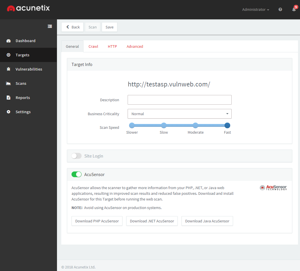 Acunetix AcuSensor是Acunetix针对PHP,ASP.NET和Java Web应用程序的IAST产品。默认情况下Acunetix包括AcuSensor,通过在运行应用程序的服务器上安装一个轻量级传感器来工作。